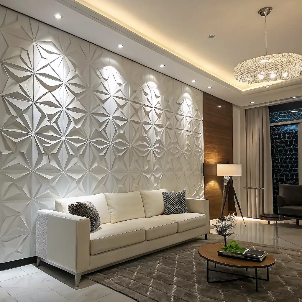 If you want to add some serious wow factor to your living room, 3D geometric panels are where it’s at. These panels create depth, shadow, and visual texture that flat walls just can’t match. I’ll admit, when I first saw these, I thought they were a bit much. But now? I’m completely converted.