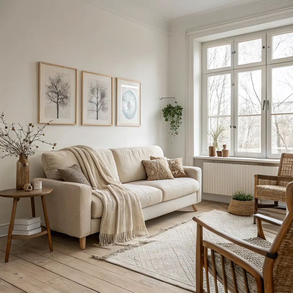 Neutral color palettes dominate Scandinavian design. We’re talking whites, creams, soft grays, and the occasional pop of sage green or dusty blue. These colors create a backdrop that feels fresh and timeless. I love how these neutral walls make colorful throw pillows and artwork really pop.