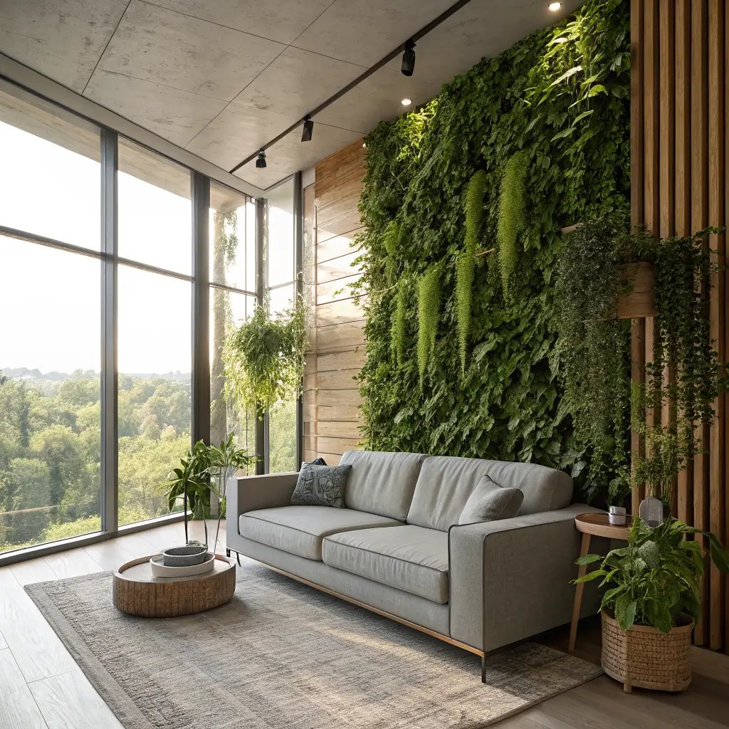 Vertical Garden Green Wall Behind Sofa Design