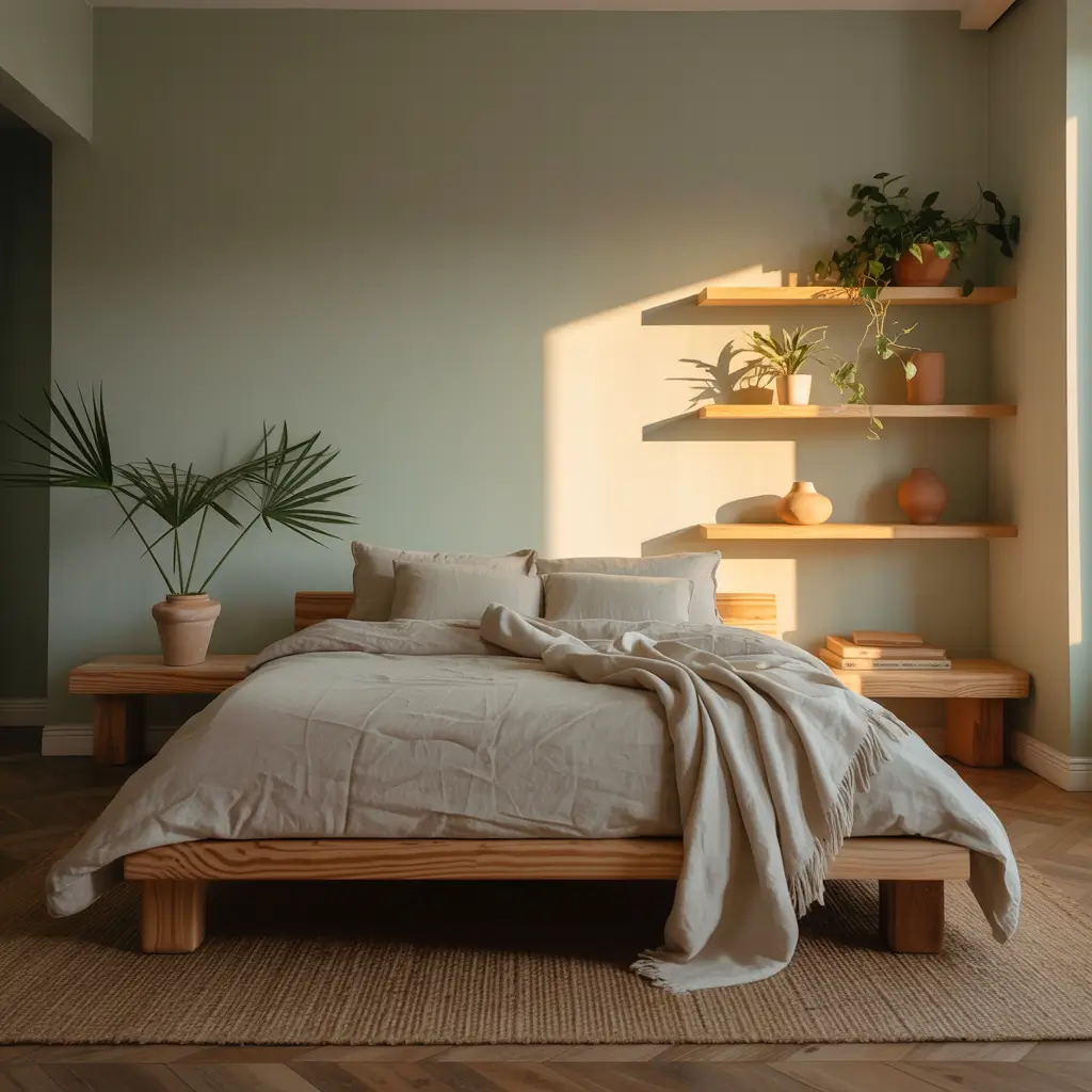 Creating a zen meditation bedroom with soft green walls basically guarantees better sleep. This style prioritizes calm, balance, and absolutely nothing that could stress you out.