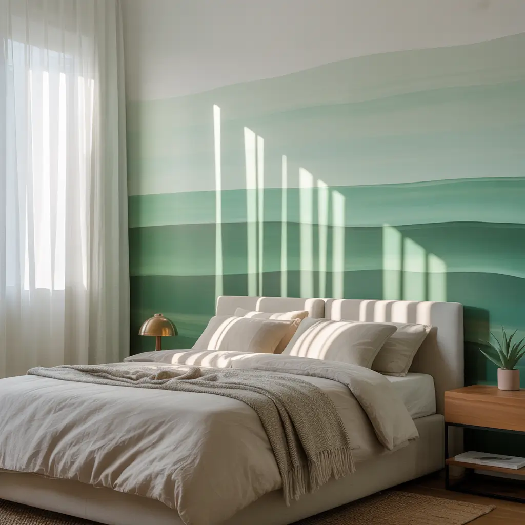 Ready for something bold? A green ombre accent wall makes a statement without overwhelming the entire room. It’s artistic, unique, and surprisingly easy to live with.