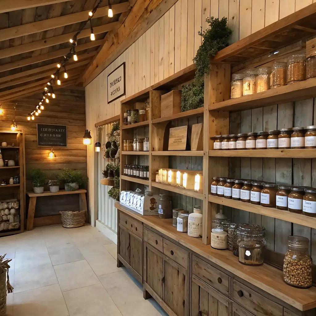 Who doesn’t love that warm, fuzzy feeling you get walking into a farmhouse-style space? Rustic farmhouse shelving taps into our collective nostalgia for simpler times when stores were gathering places, not just transaction zones.
