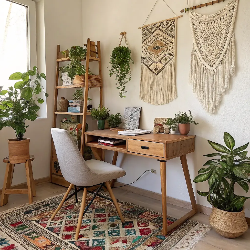 If minimalism feels too sterile for your taste, boho chic might be your perfect match. This style is all about mixing textures, warm colors, and personal touches to create a space that feels lived-in and inspiring. Think macrame wall hangings, woven baskets, and plants galore.