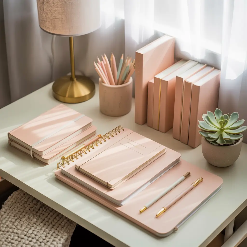 This works especially well with notebooks, folders, and desk accessories. When everything coordinates, even a messy desk looks somewhat intentional. It’s like wearing all black – instant sophistication with minimal effort.