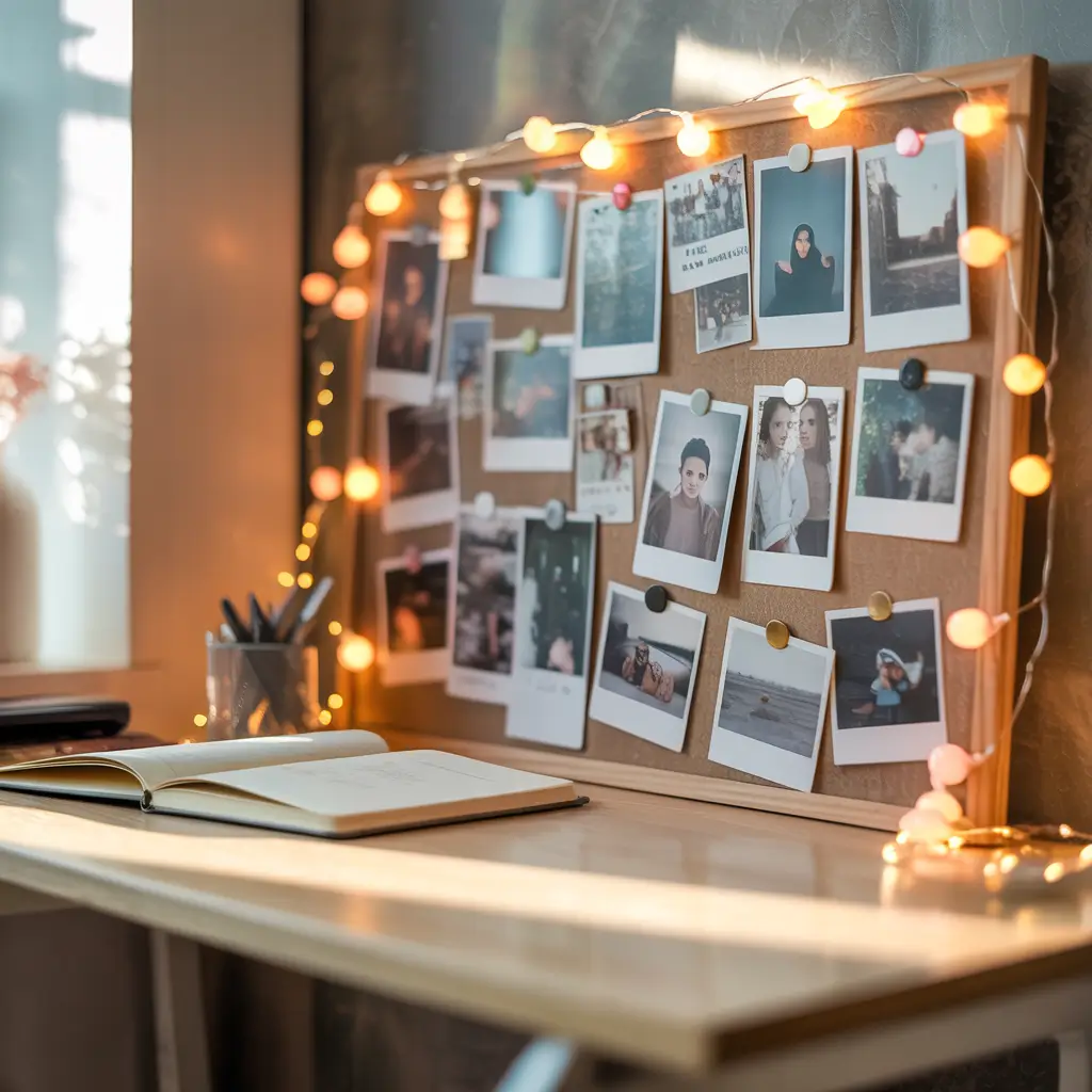Your study space should reflect who you are, not look like a sterile office cubicle. A photo collage board adds personality while keeping you motivated with reminders of people and experiences you care about.
