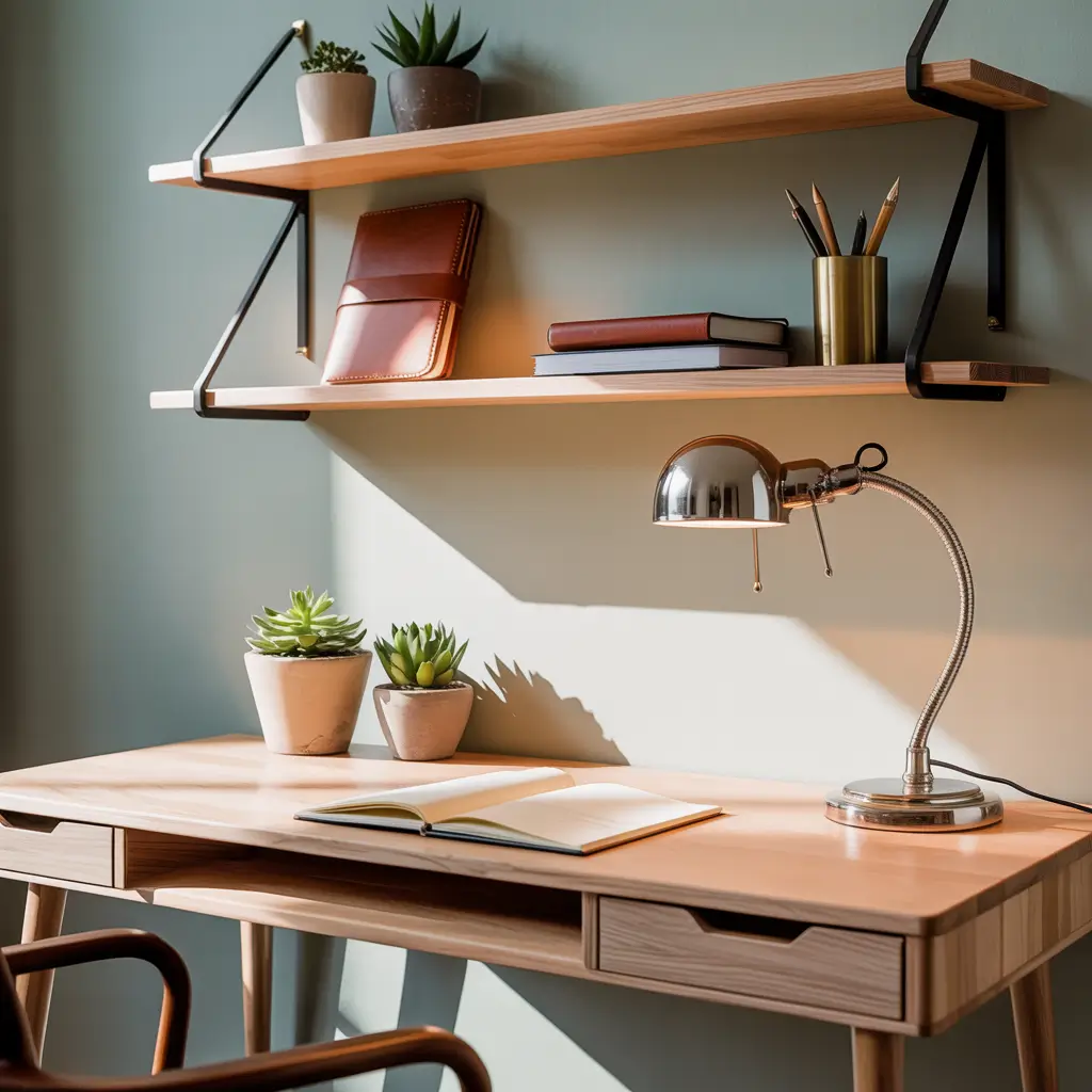 The trick is choosing shelves that complement your desk style. White floating shelves work with almost everything, but if you’re feeling bold, try natural wood or even black metal brackets for an industrial vibe.