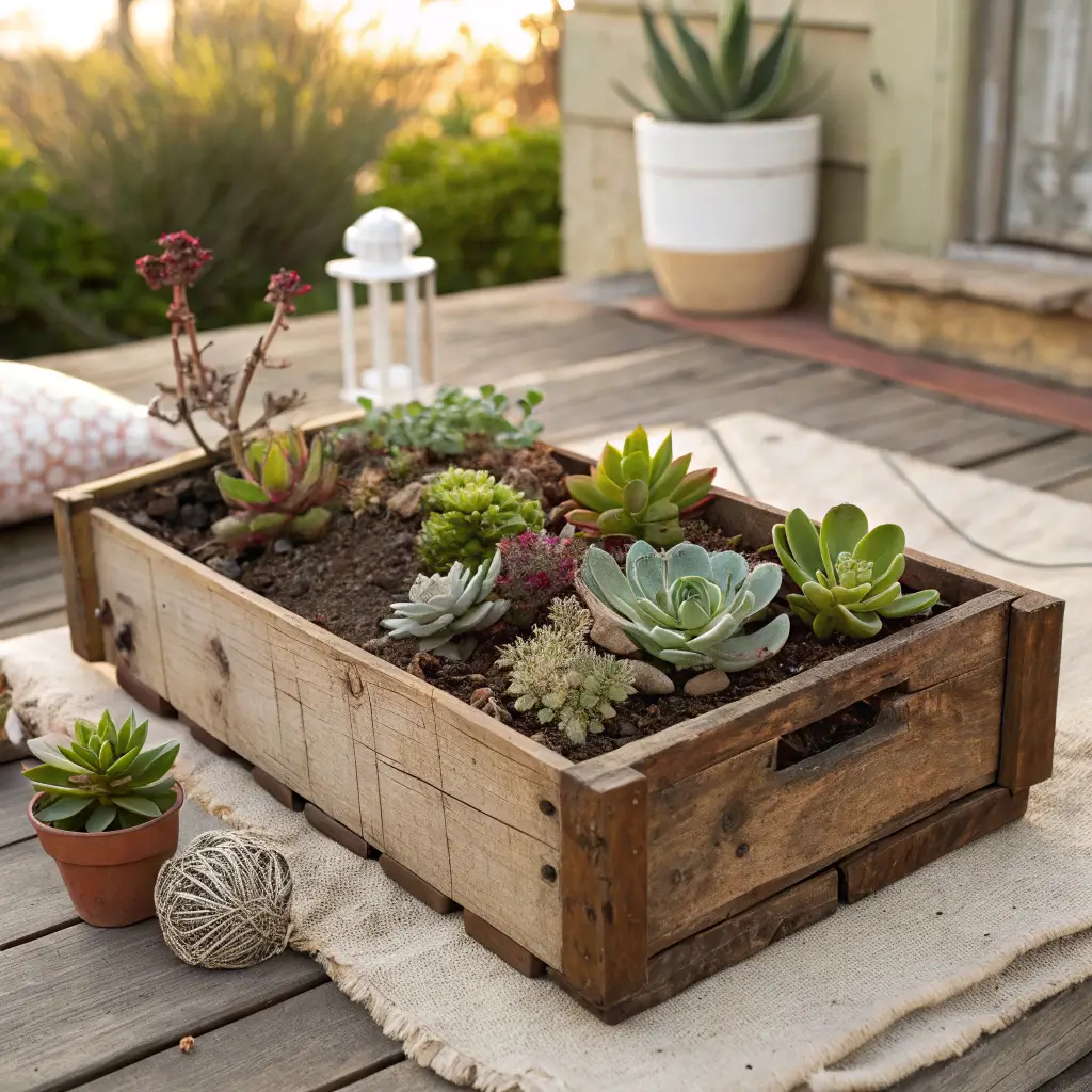 7. Rustic Wooden Crate Succulent Planter