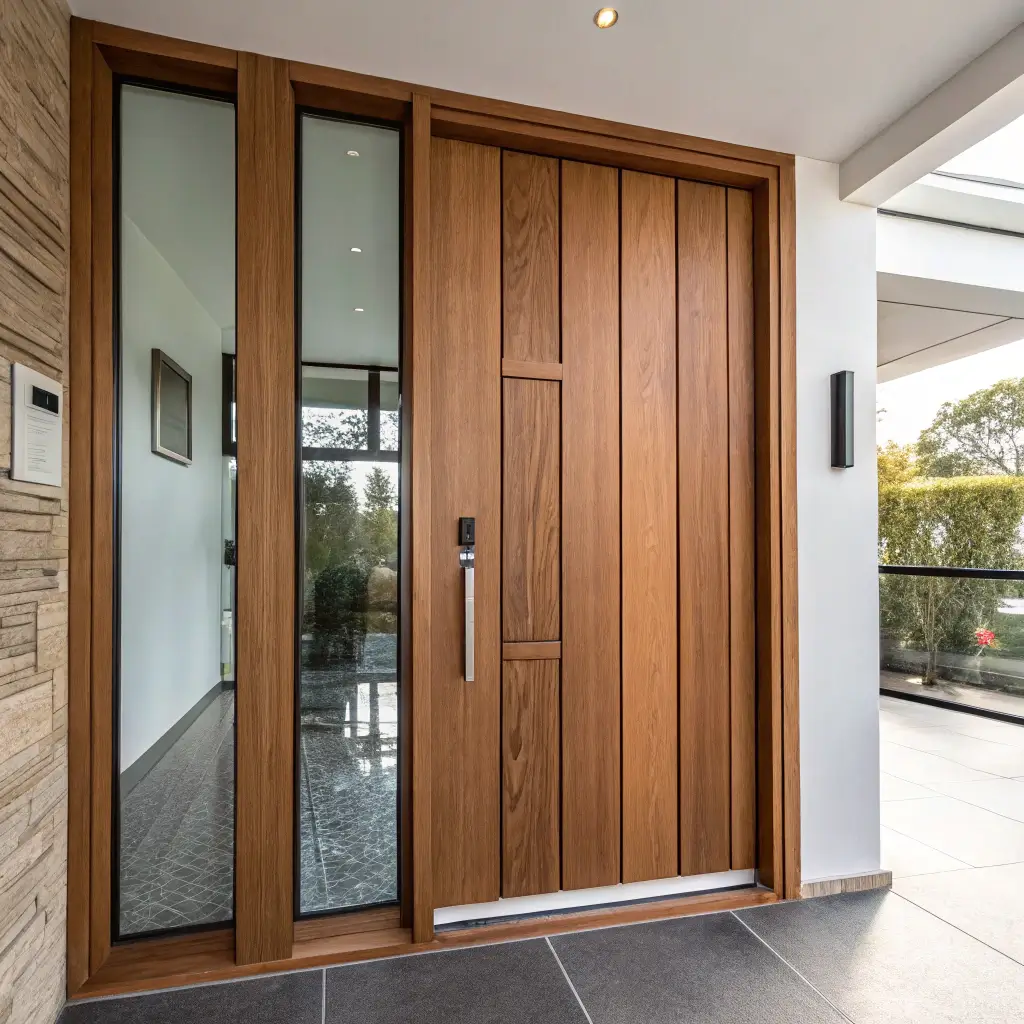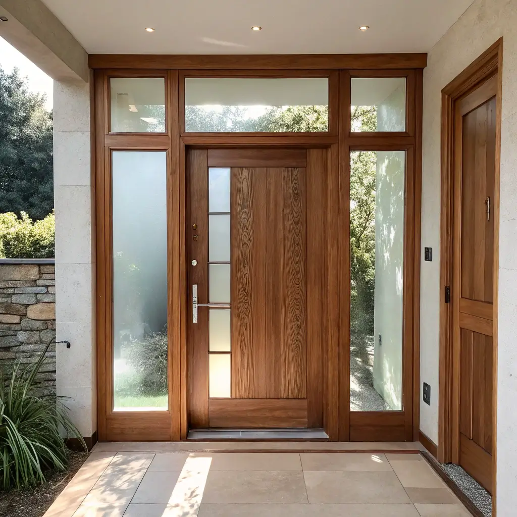 Modern Minimalist Teak Door with Glass Panels