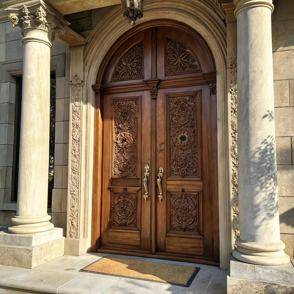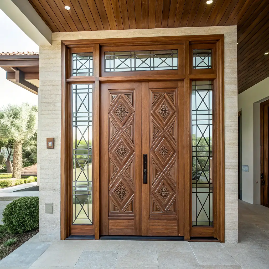 Now, if you’re someone who appreciates craftsmanship and wants your entrance to tell a story, traditional carved teak double doors are your jam. These beauties remind me of my grandmother’s house – you know, the kind that made you feel important just walking through them.