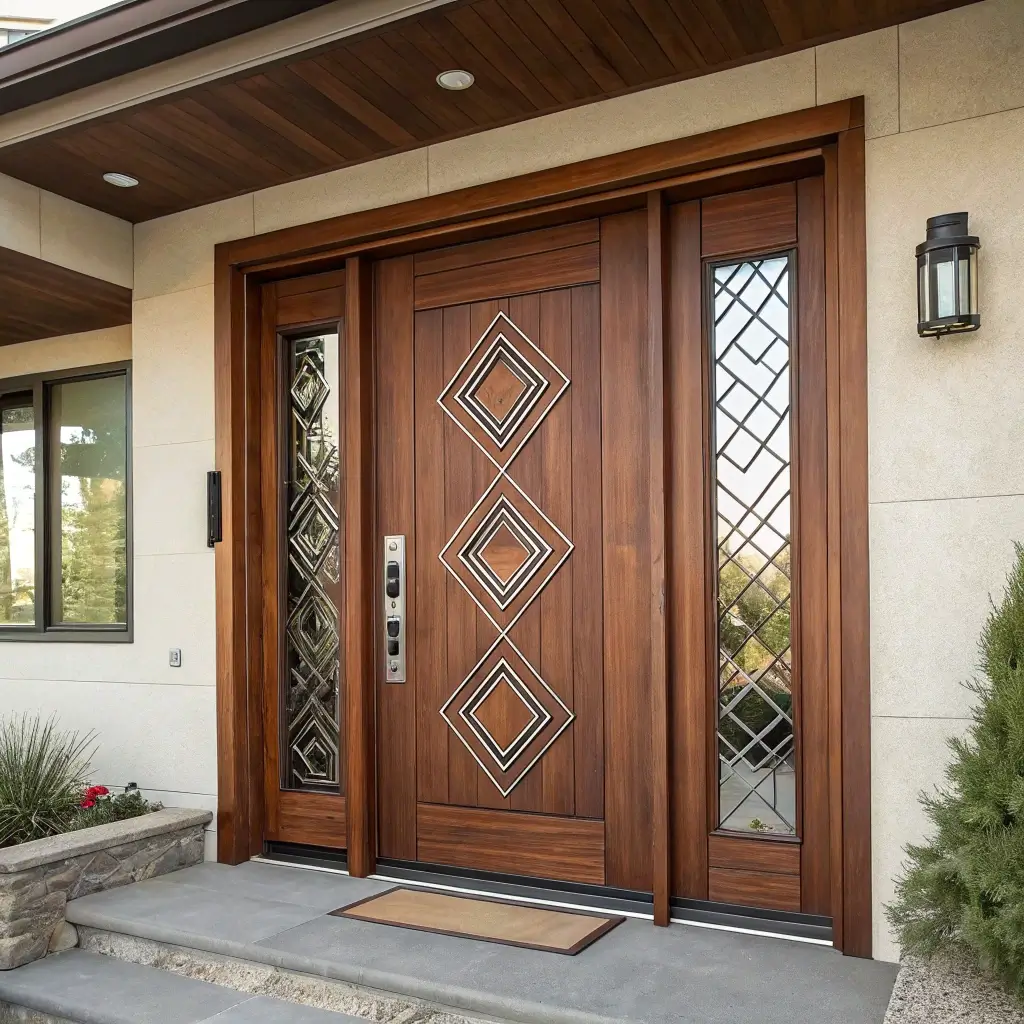 Teak Door with Geometric Inlays