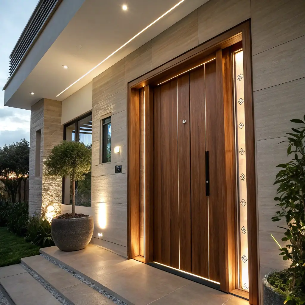 Teak Door with Integrated Lighting Panels