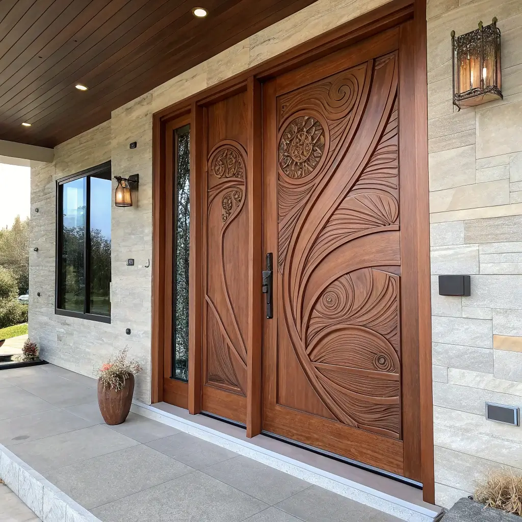 What makes abstract carvings special? They’re open to interpretation. Every visitor sees something different, making your door a conversation piece that never gets old. Plus, abstract designs tend to age better stylistically – they don’t scream “2024” the way some trendy designs might.