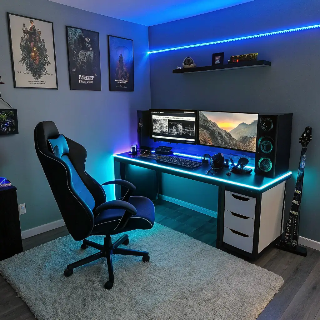 First things first, you need a proper gaming desk. Not just any desk, but one that can handle multiple monitors, has cable management built in, and doesn’t wobble when you’re in an intense gaming session. I recommend going for an L-shaped desk if you’ve got the space – it gives you room for your gaming setup plus homework (because we both know that’s totally why you need the extra space, right?).