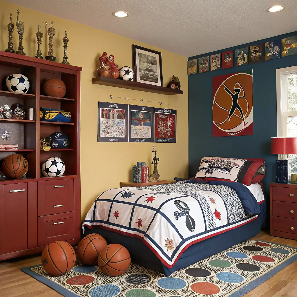 Instead of plastering team posters everywhere, frame some high-quality sports photography or vintage team prints. Display jerseys in shadow boxes rather than just hanging them on hooks. These small upgrades make a huge difference in how mature the room looks.