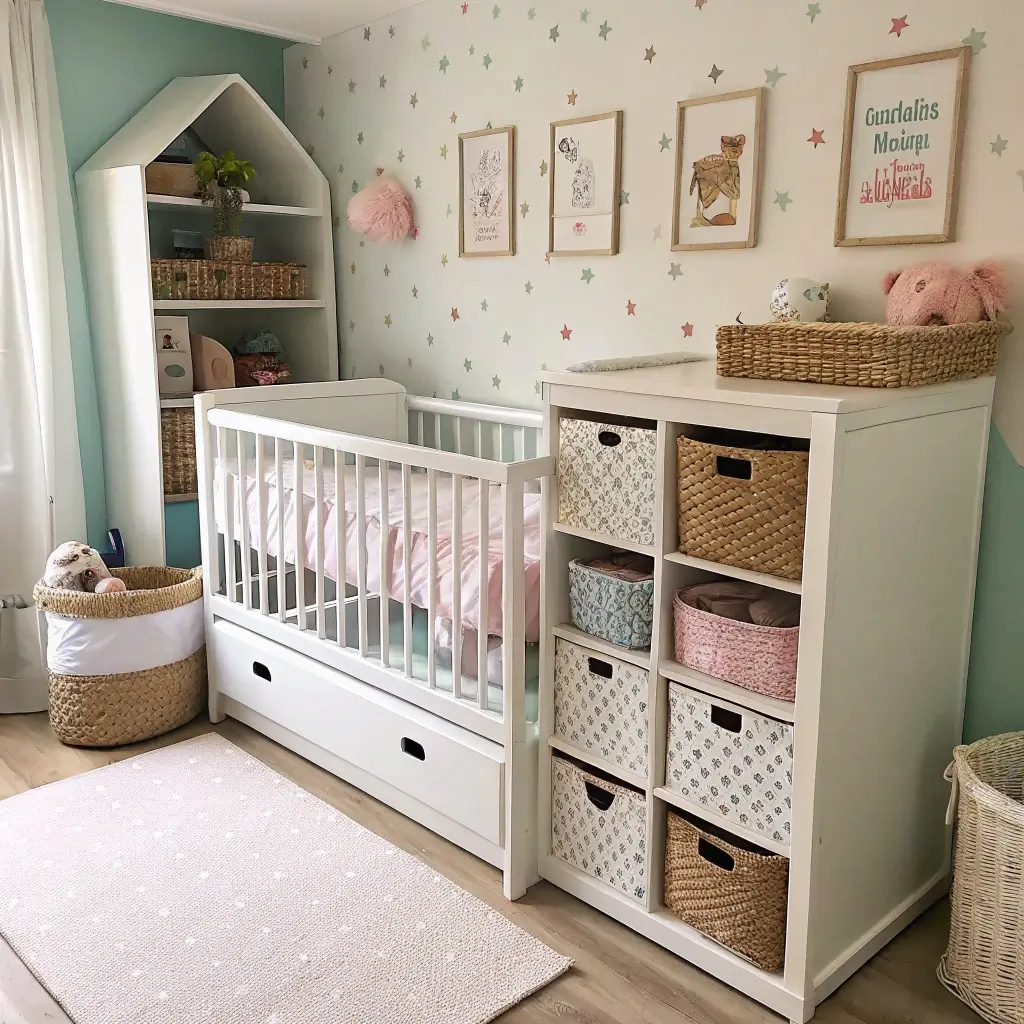 I’m obsessed with cribs that transform into toddler beds, then into daybeds, then into full beds. Yes, they cost more upfront, but you’re buying four pieces of furniture in one. In a tiny nursery, that growing functionality is everything.