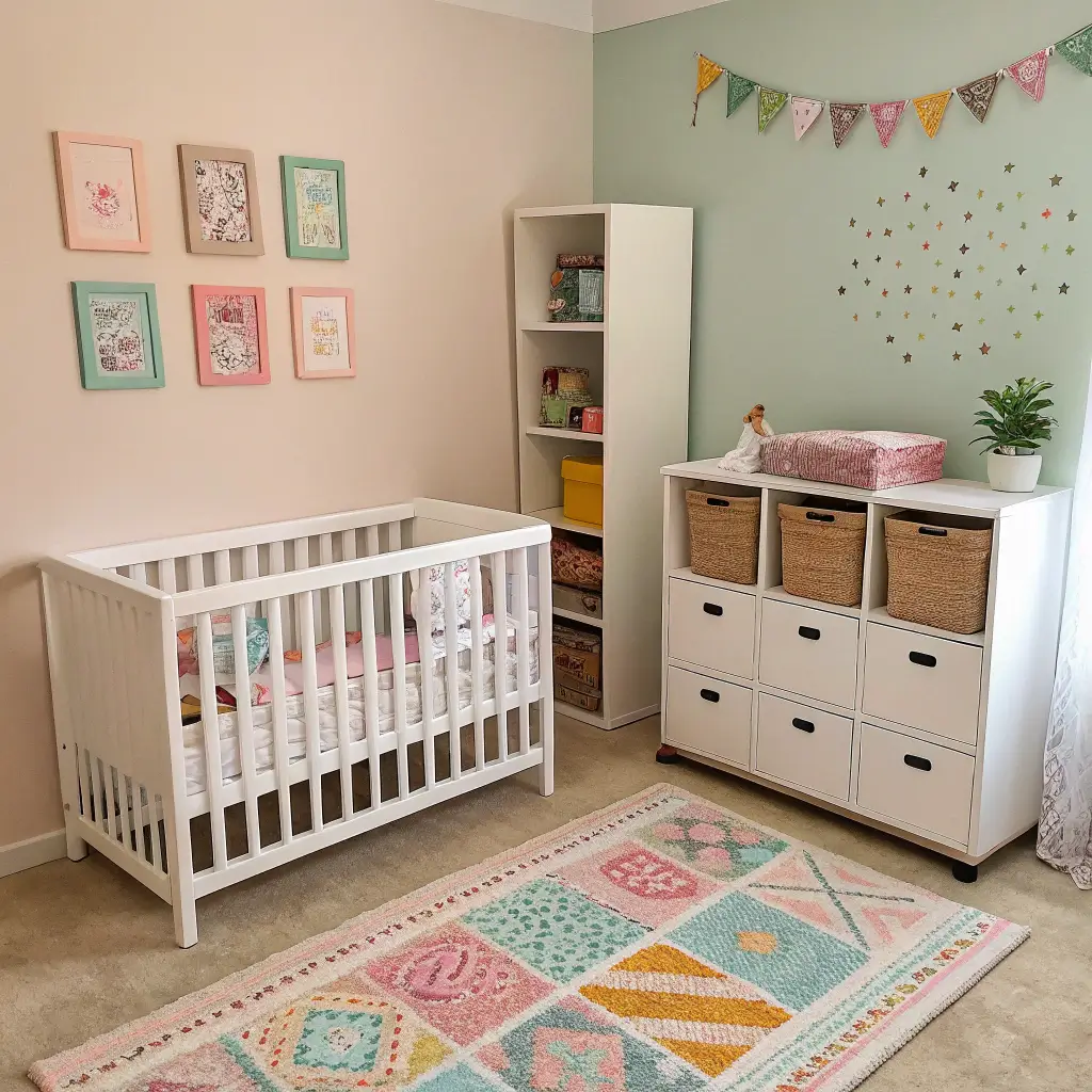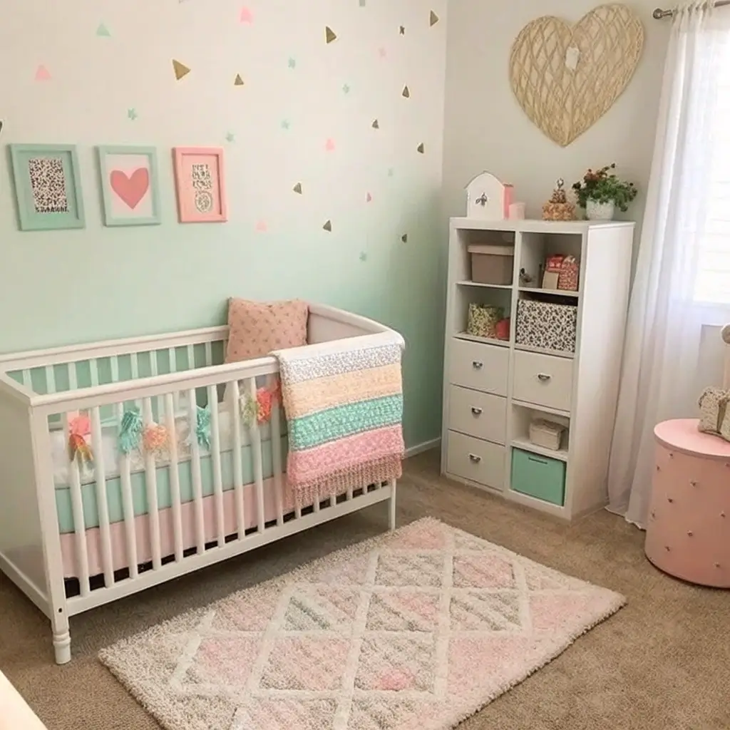 Who says tiny nurseries have to whisper? Sometimes you need a room that shouts (quietly, because baby’s sleeping). Strategic pops of pastel colors can actually make small spaces feel larger when done right.