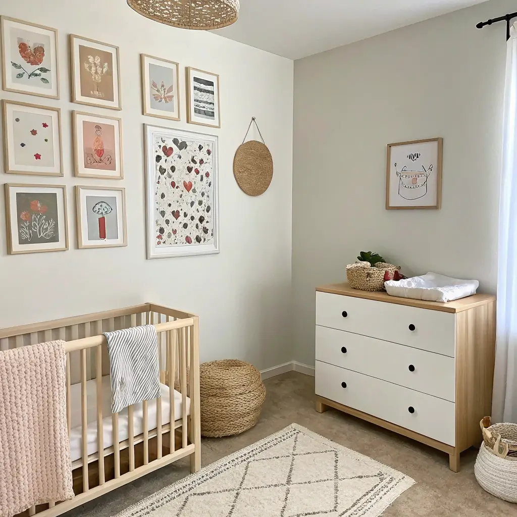 Empty walls in tiny nurseries make me sad. You’ve got all this vertical space just sitting there! A well-designed gallery wall adds personality without stealing an inch of floor space.