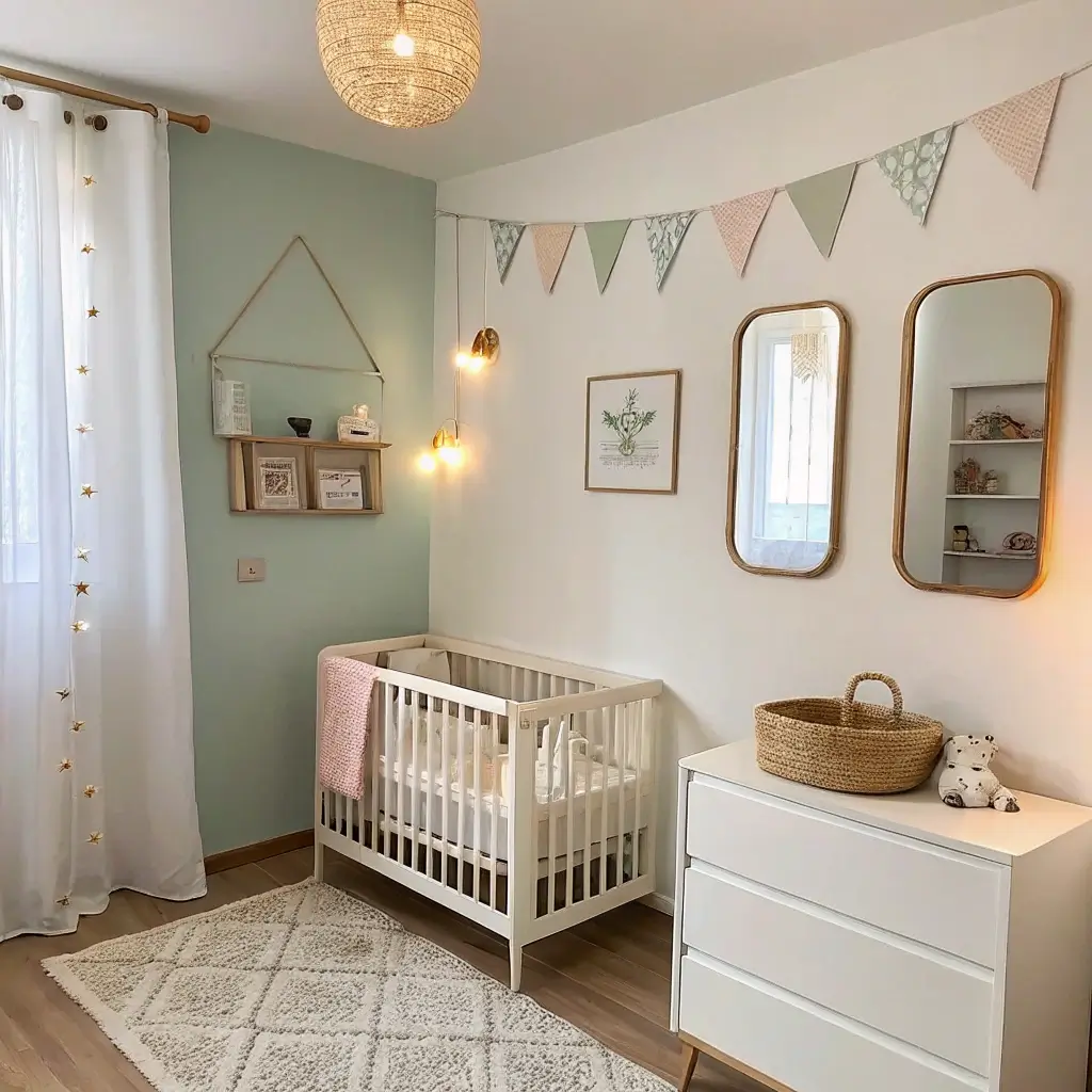 Want to know what really makes this work? Negative space becomes your best friend. You don’t fill every corner with stuff. Instead, you let the room breathe. Pick furniture with clean lines – no ornate Victorian cribs here, thank you very much. A simple wooden crib in white or light grey anchors the room without overwhelming it.