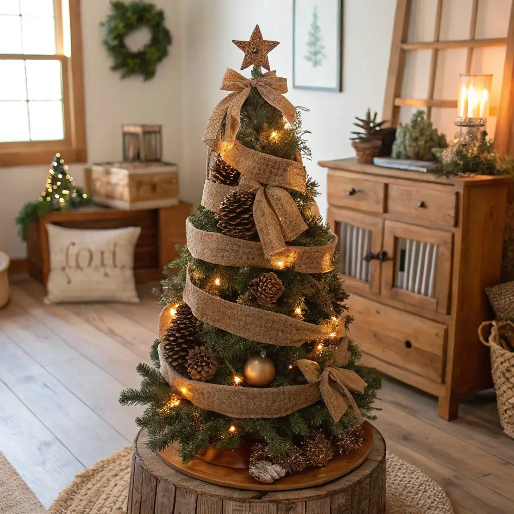 The beauty of this style lies in its simplicity. You flip that tomato cage upside down (revolutionary, right?), and suddenly you’ve got the perfect cone shape for a tree. I wrap mine with burlap ribbon, starting from the bottom and working my way up. The trick here is to keep the burlap slightly loose – you want that effortlessly undone look that screams “I live on a charming farm” even if you’re in a studio apartment.