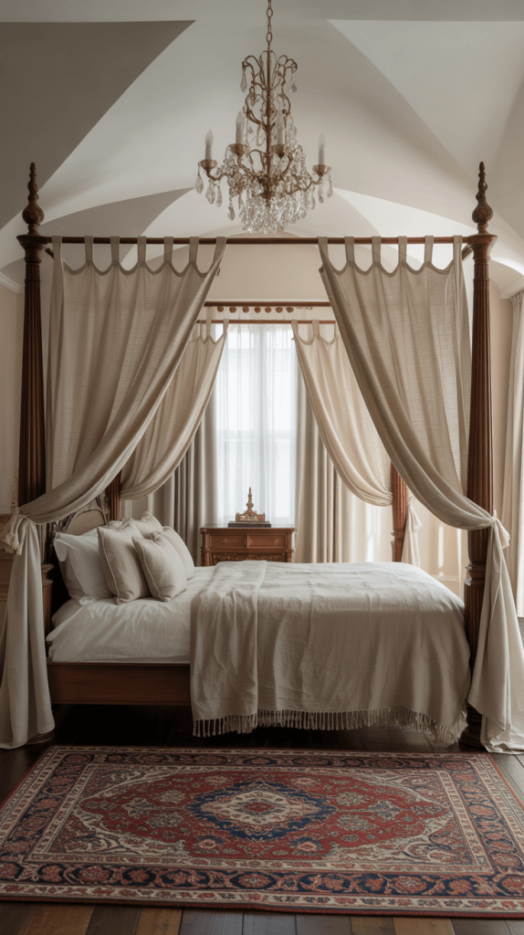 - Material Mix: While wood is classic, iron four-poster beds are also stunning and can lean more towards a French Country or rustic feel.