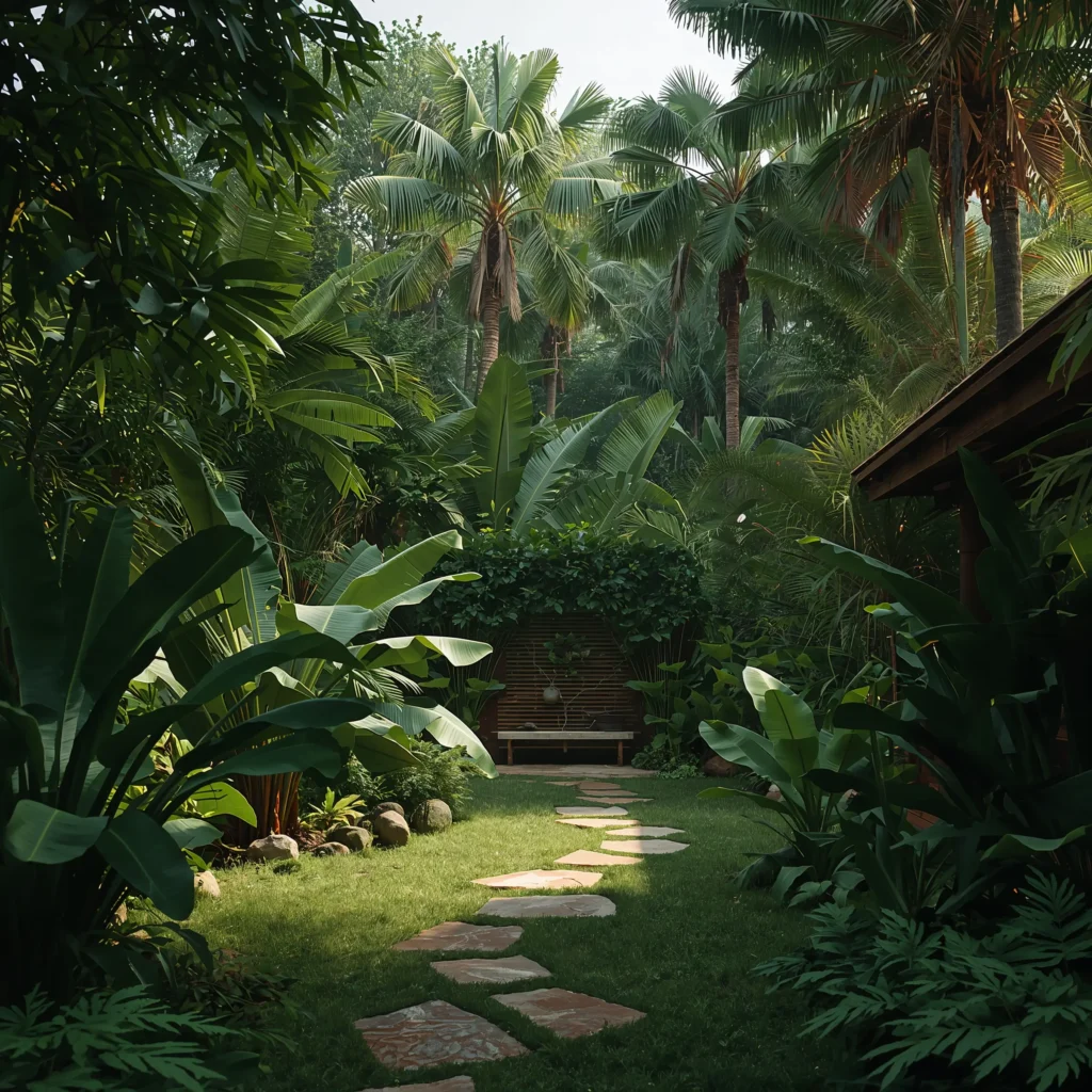 Layer planning becomes critical in dense jungle gardens. You need tall canopy plants, understory shrubs, and ground-covering options that all play nicely together. The goal is creating the feeling that plants have naturally taken over the space.