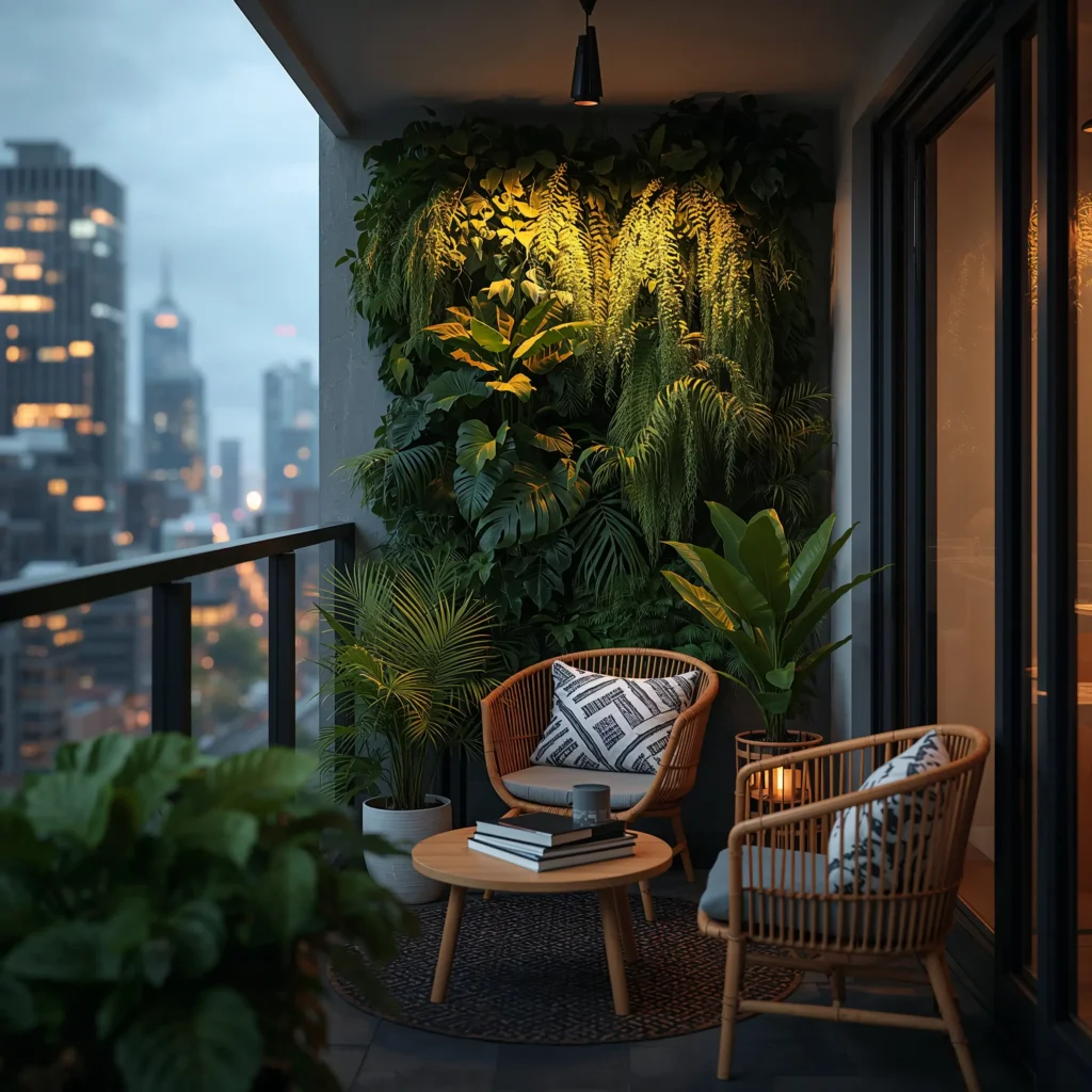 Furniture matters too in small spaces. A simple bistro set with tropical-print cushions or a hanging chair (if your balcony can handle it) completes the retreat vibe.