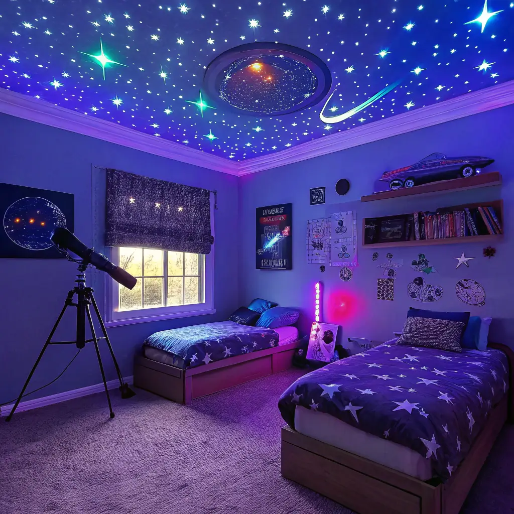 The educational potential here is off the charts. Install a telescope by the window, frame NASA photographs, and watch your boys actually want to learn about astronomy. Who knew bedroom décor could boost their science grades?