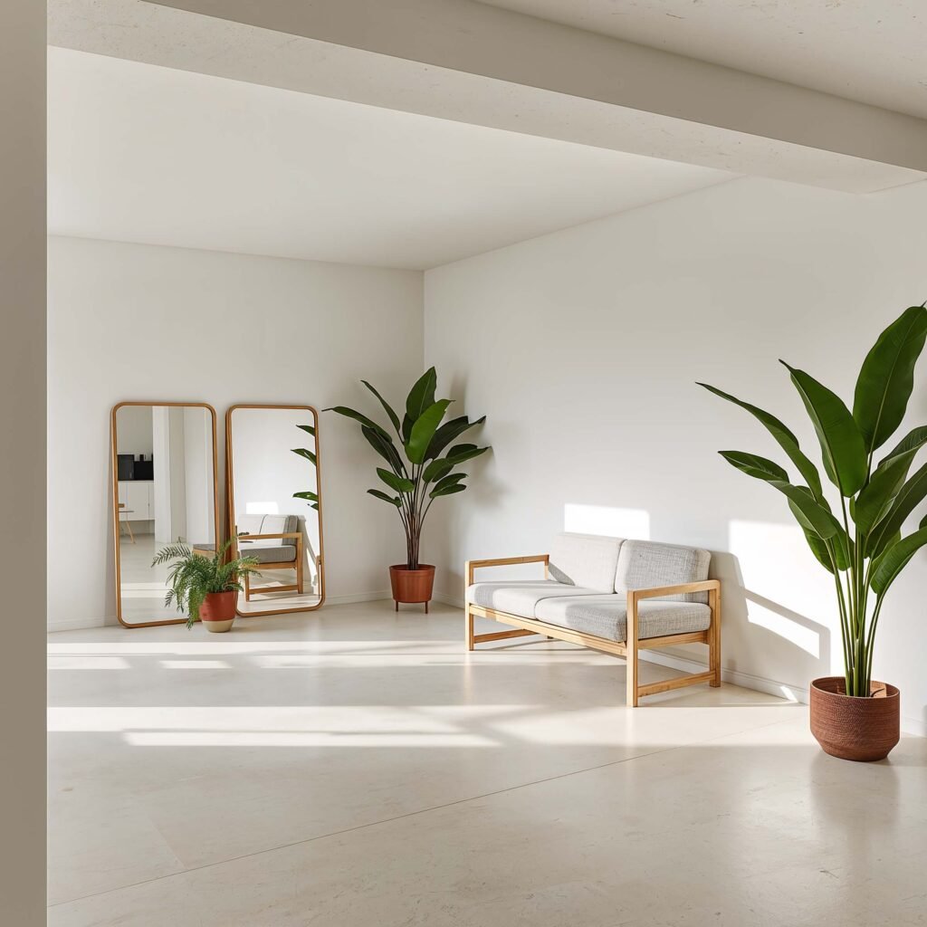 Strategically placed mirrors double your light instantly. Large mirrors from discount stores ($40-60) reflect both natural and artificial light throughout the space. Position them opposite windows or light sources for maximum effect.