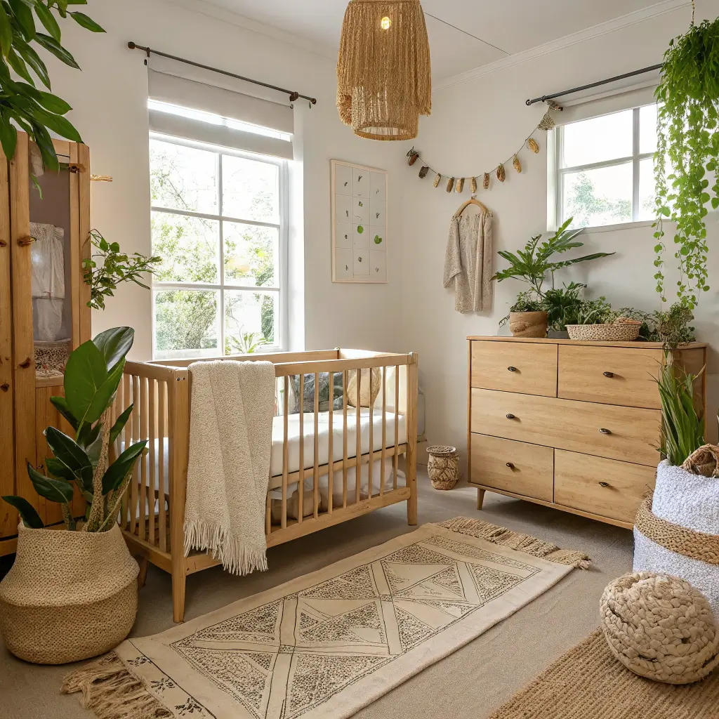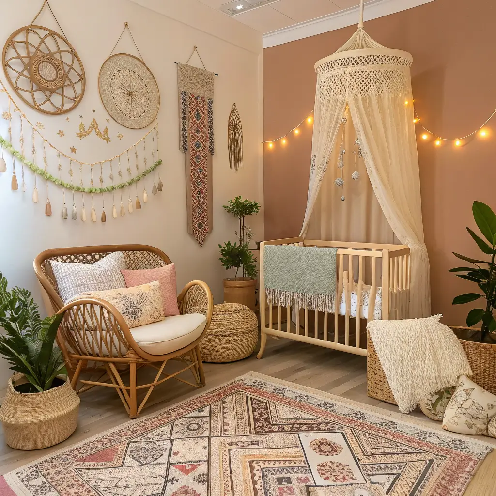 Who says babies can’t be bohemian? The boho chic nursery brings all those free-spirited vibes right into your little one’s first bedroom. We’re talking macramé wall hangings, natural textures, and enough plants to start your own jungle (fake ones count, FYI).