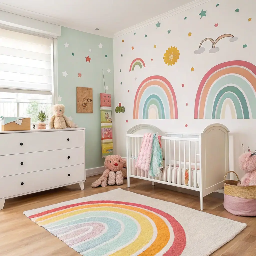 The secret sauce? Pick your rainbow colors in muted tones—think dusty rose, sage green, butter yellow. Your eyes won’t hurt at midnight feedings, but the room still pops with personality.