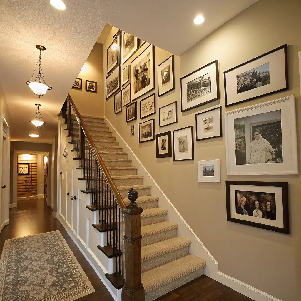 Nothing personalizes a space quite like family photos, and your upstairs hallway offers the perfect private gallery for these treasures. This is where you celebrate your people, away from the formal spaces downstairs where you entertain guests.