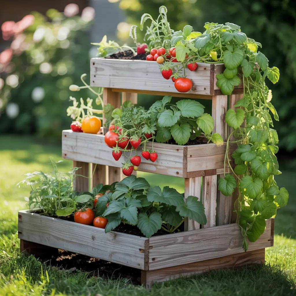 Tiered Wooden Vegetable Garden Setup