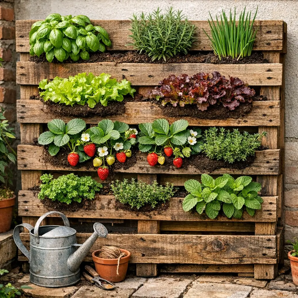 Plant selection determines success with pallet gardens. Shallow-rooted plants like lettuce, herbs, and strawberries thrive in the limited soil depth. I avoid deep-rooted vegetables that need more space than pallet pockets provide.