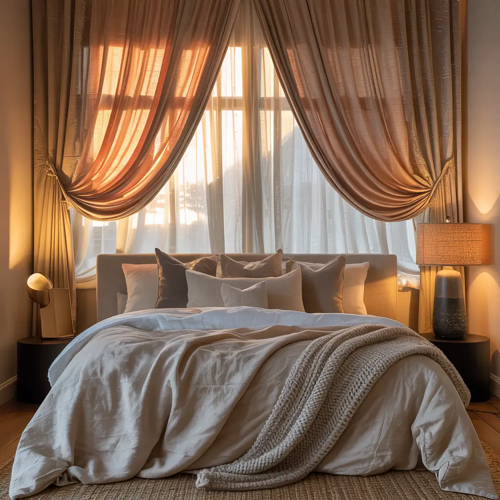 Ready to go all out? The luxury master bedroom treatment means premium velvet, custom sizing, and all the bells and whistles. We’re talking lined curtains with blackout backing, weighted hems, and professional installation. This is investment-level window treatment.