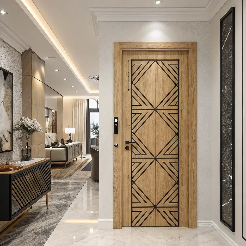 Want to make a statement? Geometric pattern veneer doors are having a serious moment right now. Bold angles, repeating patterns, and artistic flair – these doors are basically functional art pieces.
