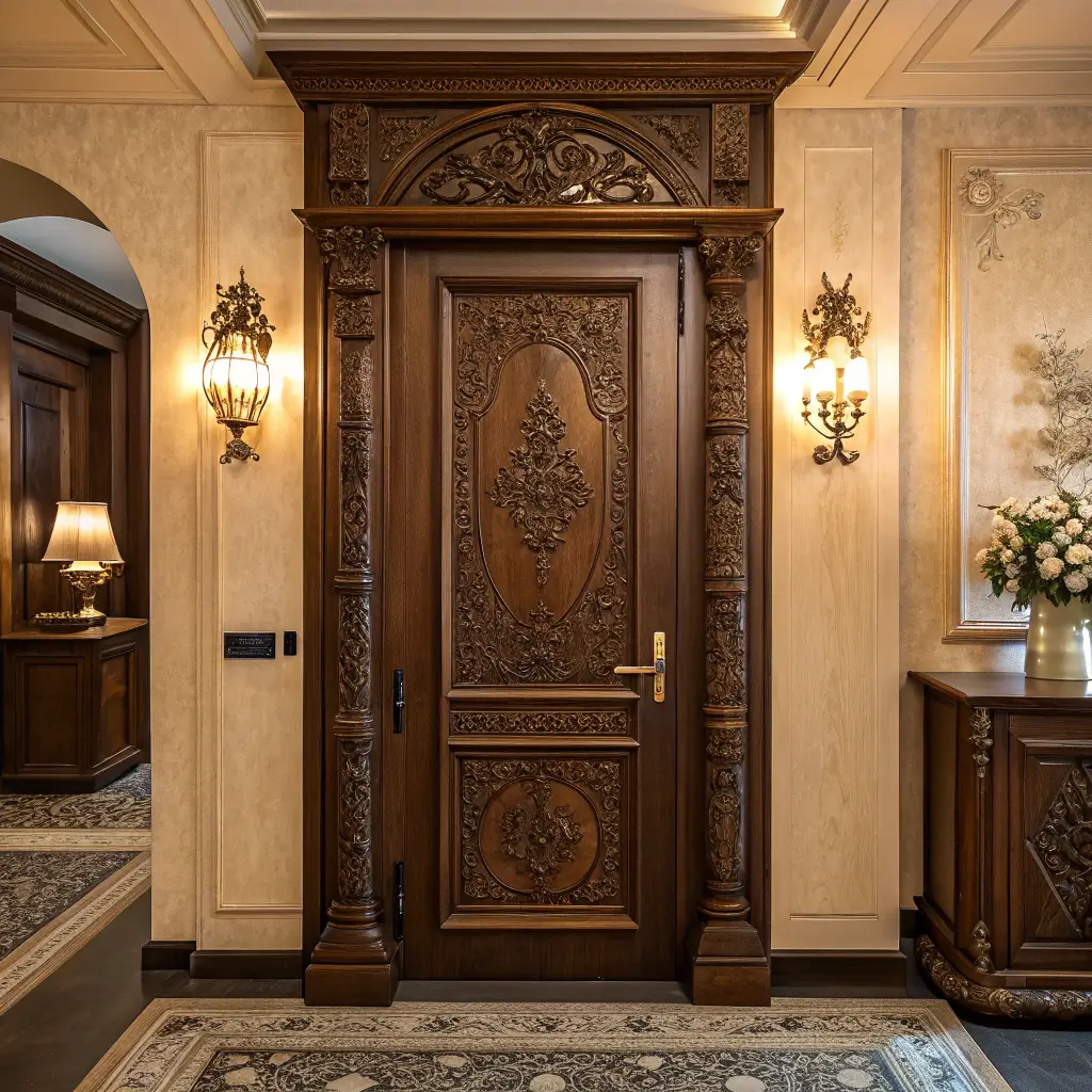 For those who believe more is more, vintage carved veneer doors deliver maximum impact. Intricate patterns, detailed motifs, and artisan craftsmanship turn these doors into conversation starters.
