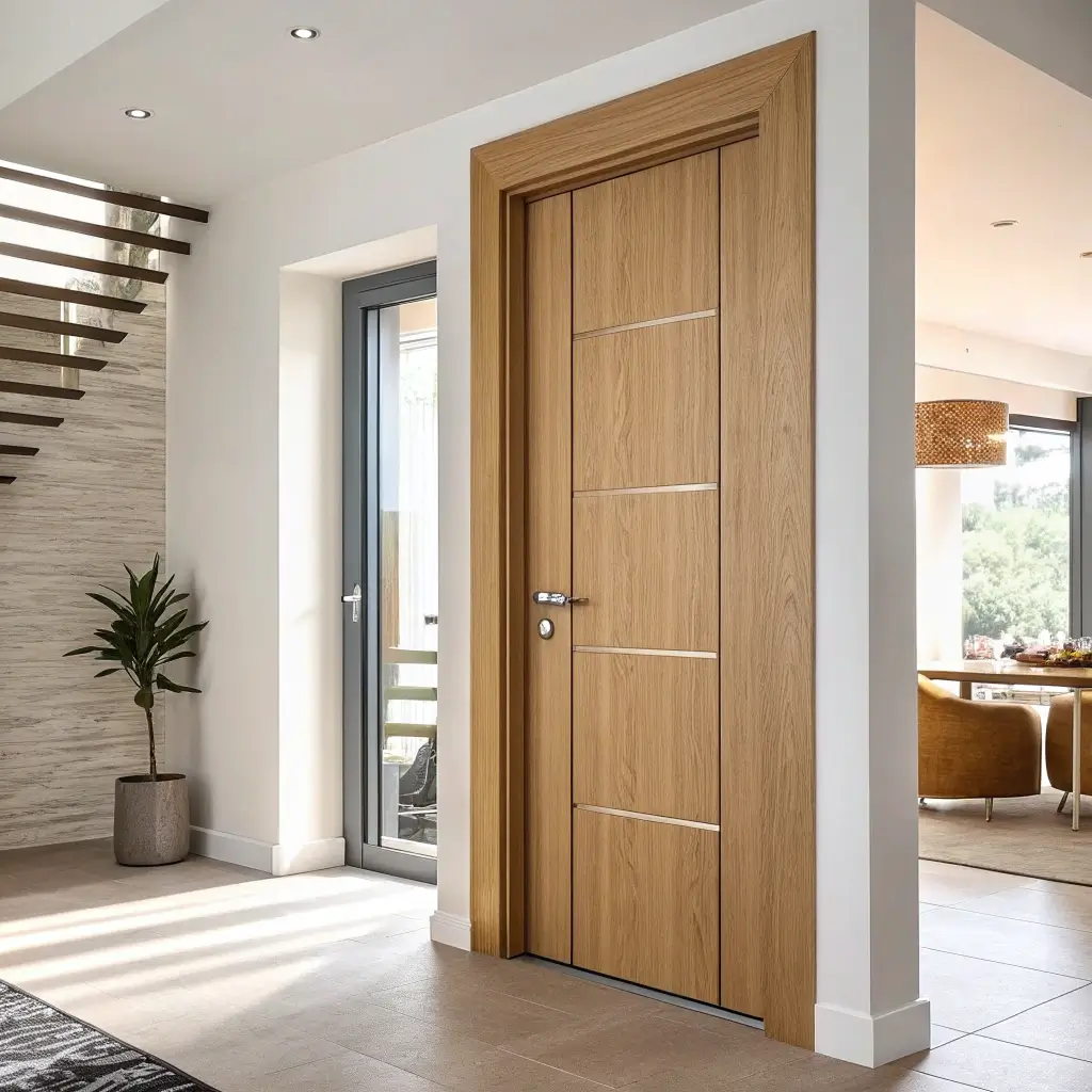 The beauty of minimalist veneer doors lies in their versatility. Want them in bleached ash? Go for it. Prefer a warm walnut? That works too. They’re like the perfect white tee of the door world – they go with everything.