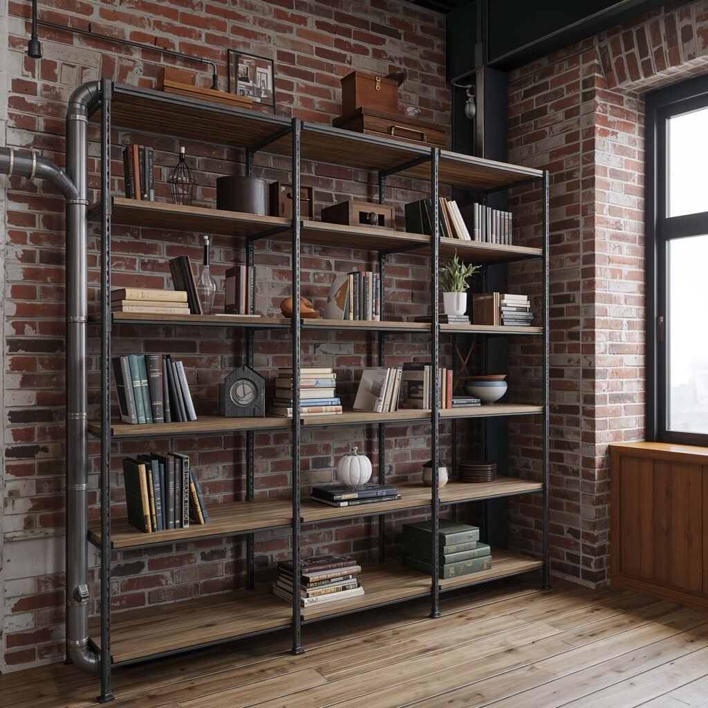 Industrial pipe shelving is what happens when function stops hiding behind form and decides to be the star of the show. These shelves don’t pretend their pipes and fittings are anything other than what they are, and that honesty is refreshing.