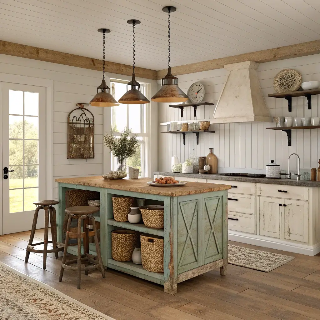 Size matters here, but not in the way you think. A smaller, moveable island often works better than a massive built-in. You get flexibility plus that casual, unfussy vibe that screams authentic farmhouse.