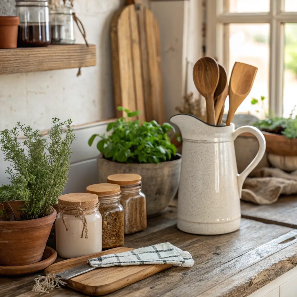 The accessories you choose make your kitchen feel genuinely vintage or like a farmhouse-themed restaurant. Skip the mass-produced “farmhouse” signs – you know the ones I mean. Instead, collect pieces with actual history and character.