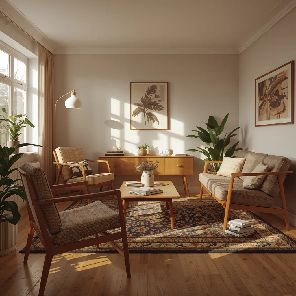 Cozy Mid-Century Vintage Living Rooms