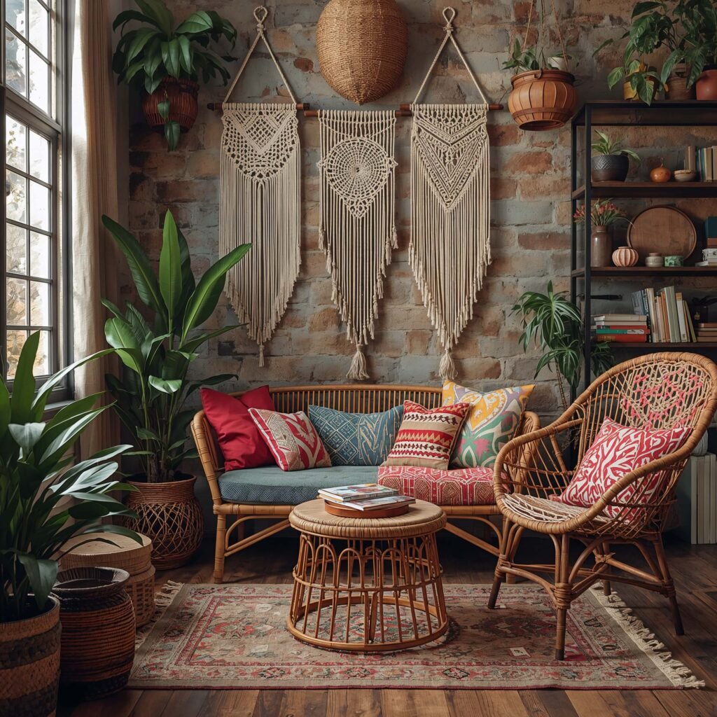 - Natural materials like jute, rattan, and wood