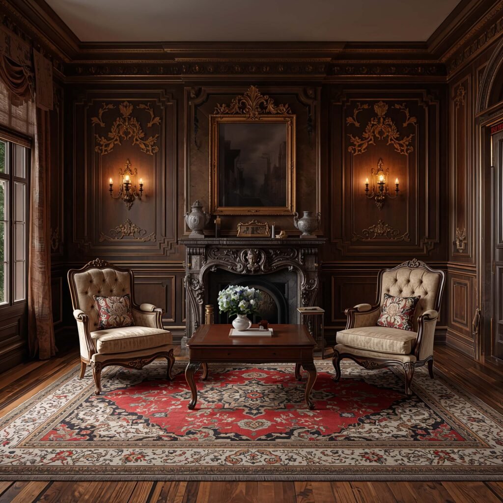 Start with one statement Victorian piece – maybe a tufted velvet sofa or an ornate mirror. Build around it with rich colors: deep burgundy, forest green, navy blue, or plum. Layer in luxurious textures: velvet cushions, silk curtains, wool rugs. The trick is restraint – you want elegant Victorian, not “I robbed a museum.”