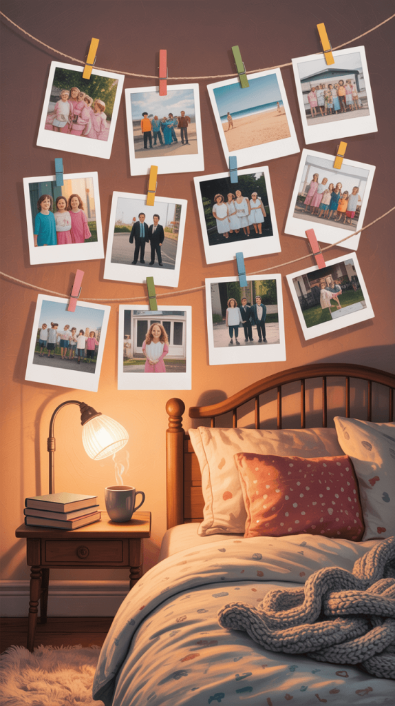 My Two Cents: All you need is some string, a few mini clothespins, and your photos. You can hang them from a piece of driftwood, a wire, or even just tape them directly to the wall in a fun shape. The imperfection is the point. It feels youthful, nostalgic, and wonderfully personal.