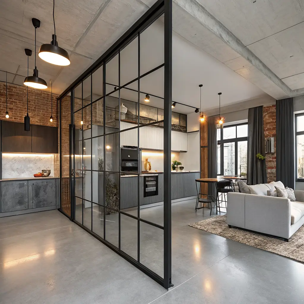 Now, if you’re after that sleek, industrial vibe, glass partitions with black frames are where it’s at. These bad boys scream sophistication while maintaining that open feel everyone loves about modern design.
