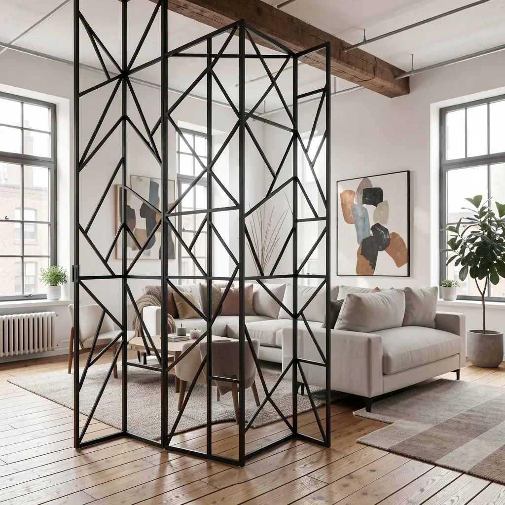 For those who love making a statement, geometric metal partitions bring serious architectural drama to any space. Think honeycomb patterns, overlapping circles, or angular designs that cast interesting shadows throughout the day.