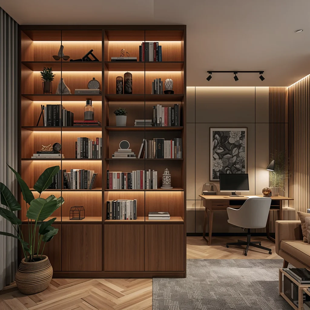 Pro tip: Don’t fill every shelf with books. Mix in plants, artwork, and decorative objects to keep things visually interesting.