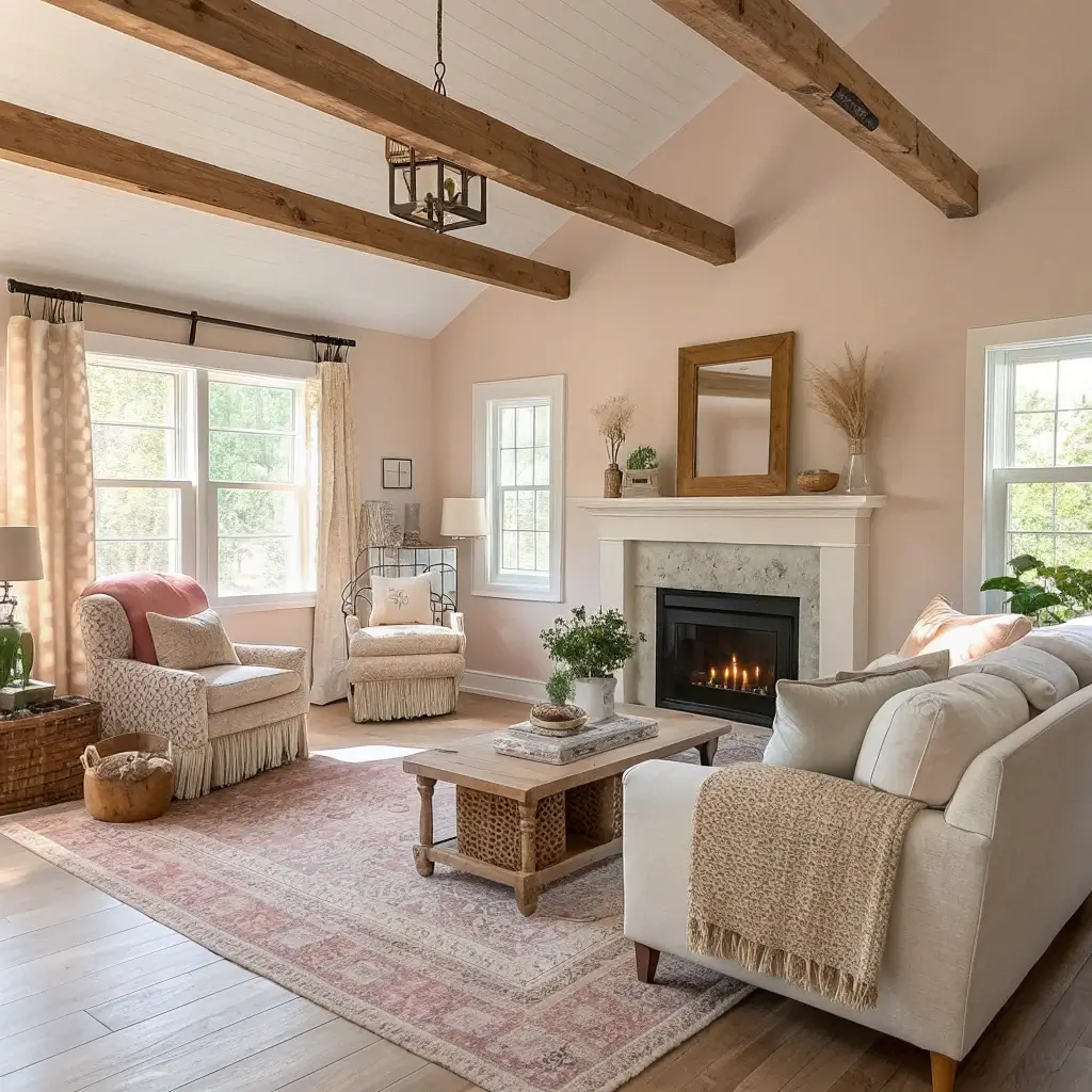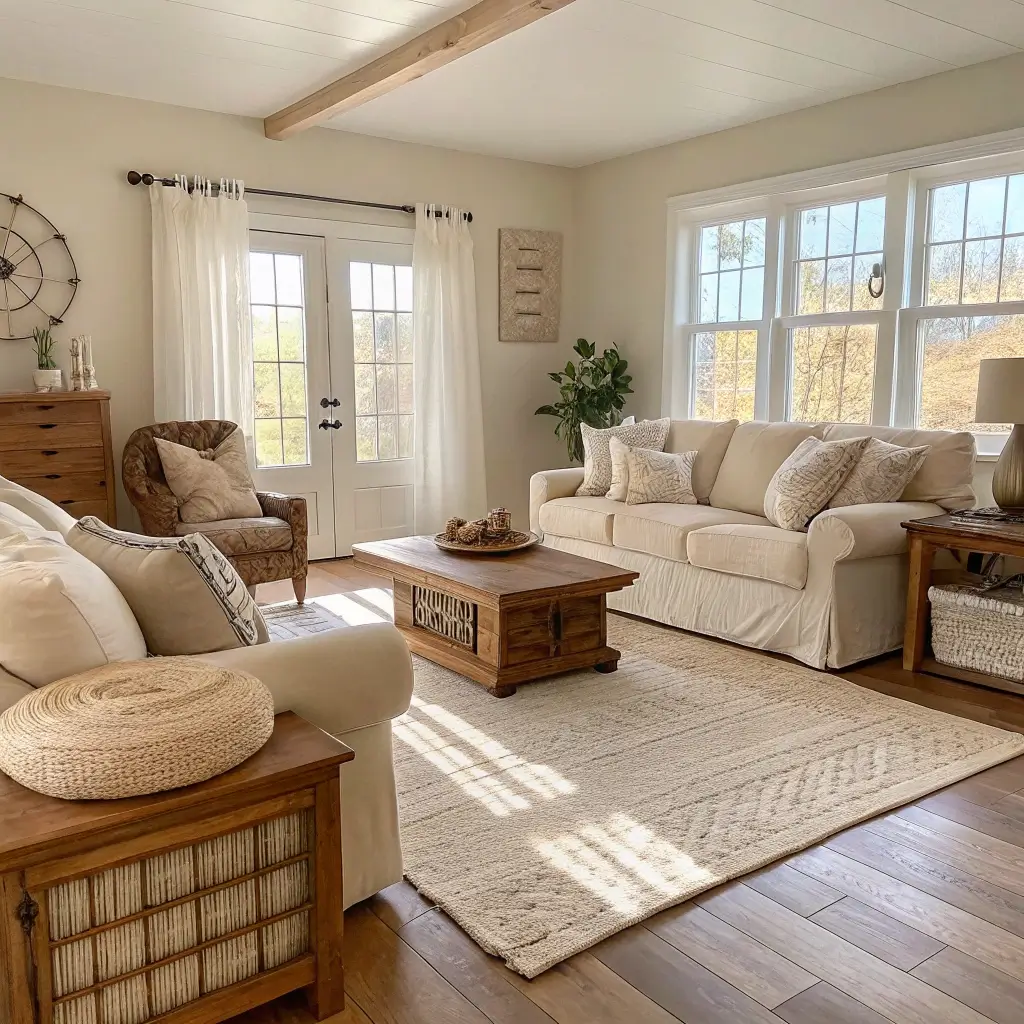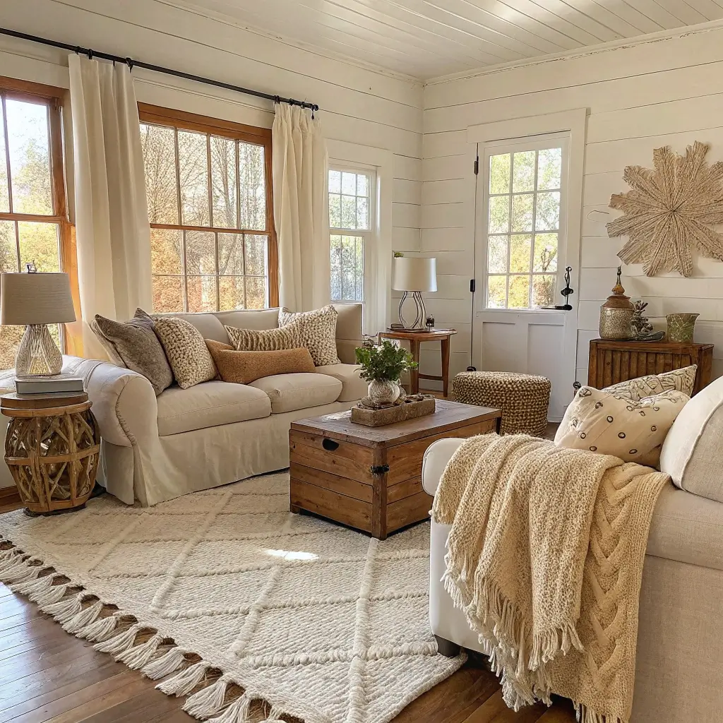 Stick with a warm color palette—think caramels, creams, soft browns, and muted terracottas. These colors create a cocoon-like feeling that makes everyone want to stay longer. IMO, cool grays had their moment, but warm tones create that farmhouse comfort we’re after.