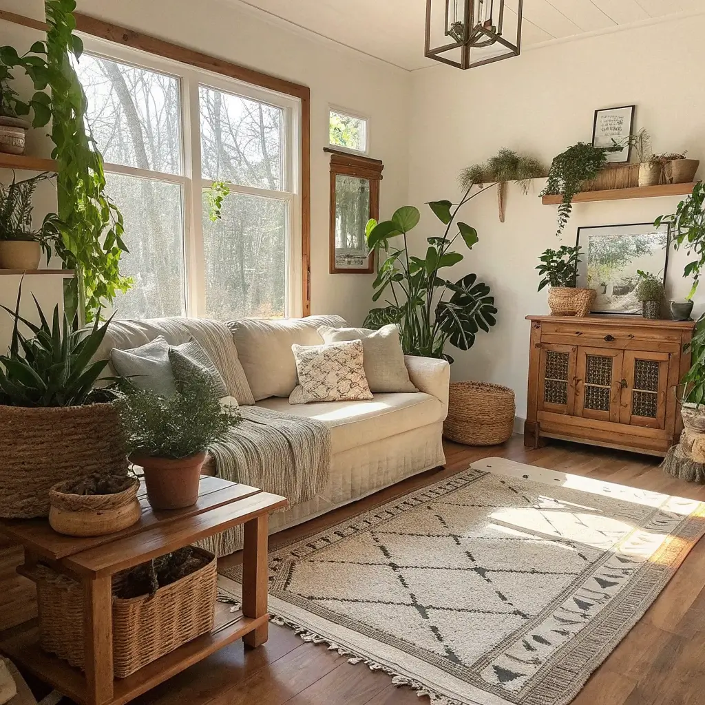 Plants breathe life into farmhouse decor—literally and figuratively. Greenery softens hard edges and adds color without competing with your neutral palette.