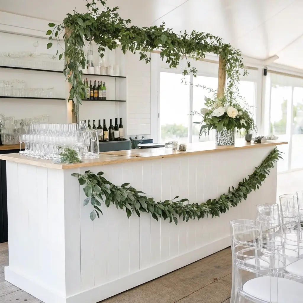 Minimalist White & Greenery Bar Setup